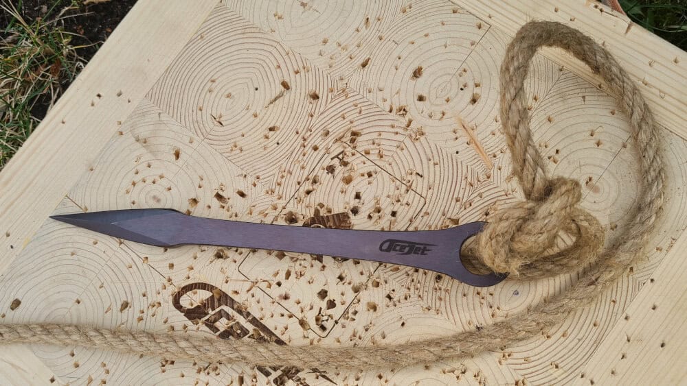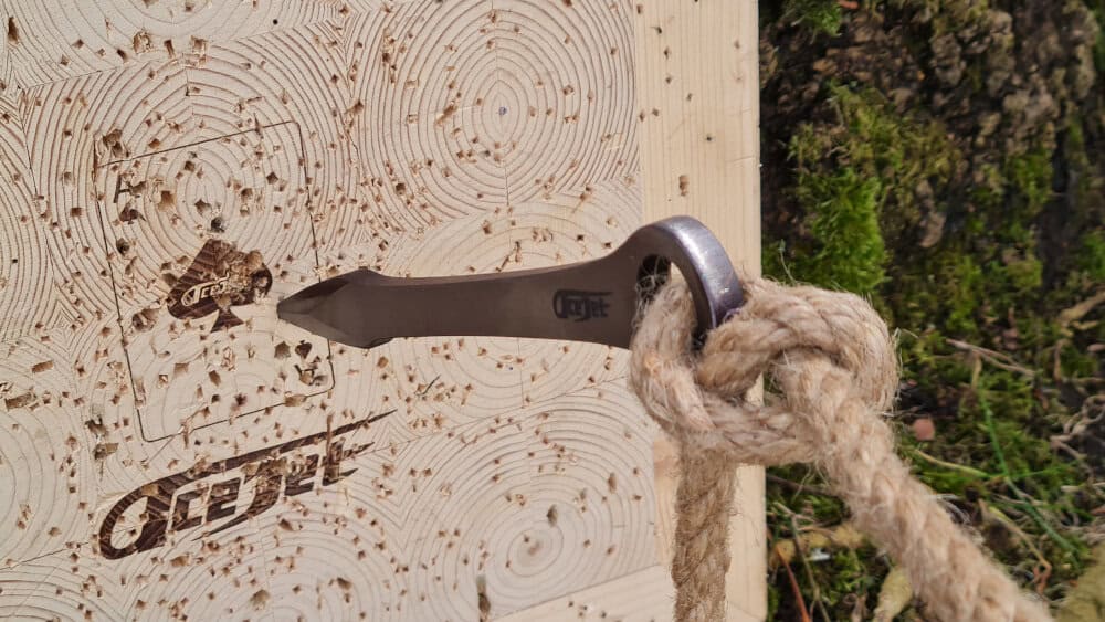 Und hier siehst Du die Acejet Kunai Wurfmesser im Einsatz beim Long Range Knife Throwing: