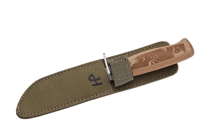 Das Herbertz Kindermesser Motiv begleitet  kleine Abenteurer auf ihren Schnitz-Exkursionen. Dieses Schnitzmesser ist aber auch wirklich in Konzeption und Sicherheit eines der besten und auch beliebtesten Messer für junge Abenteurer. Der Griff aus robustem Buchenholz und die eingefrästen Motive sorgen dafür, dass es sofort zum Lieblingsstück wird. Die Klinge aus rostfreiem 3Cr13MoV-Edelstahl ist zuverlässig und leicht nachzuschärfen – und dank abgerundeter Spitze in Kombination mit einem ausgeprägten Fingerschutz ideal für sicheres Handling geeignet. Für unterwegs kommt das Messer in einer strapazierfähigen Nylonscheide – egal ob für Waldabenteuer, Pfadfinderlager oder den ersten eigenen Schnitzversuch im Garten. Kurz gesagt: Ein echtes Werkzeug für kleine Hände, das Respekt verdient – und Verantwortung lehrt.