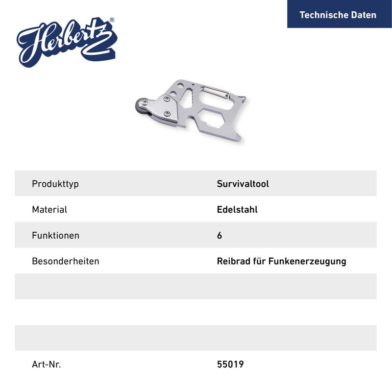 Herbertz Survival-Tool – Edelstahl, rostfrei, Feuerstarter, 6 Funktionen !