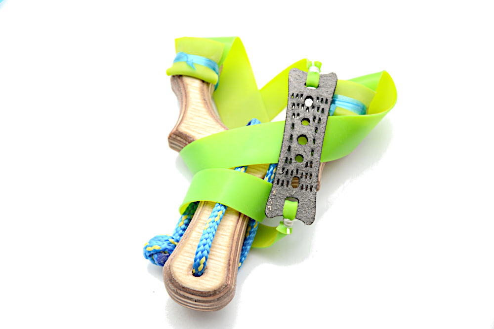 2. leistungstarkes und leicht zu ziehends 0,7mm starkes Schleudergummi mit Farbkodierung für schnelle Kontrolle des richtigen OTT-Schießstils