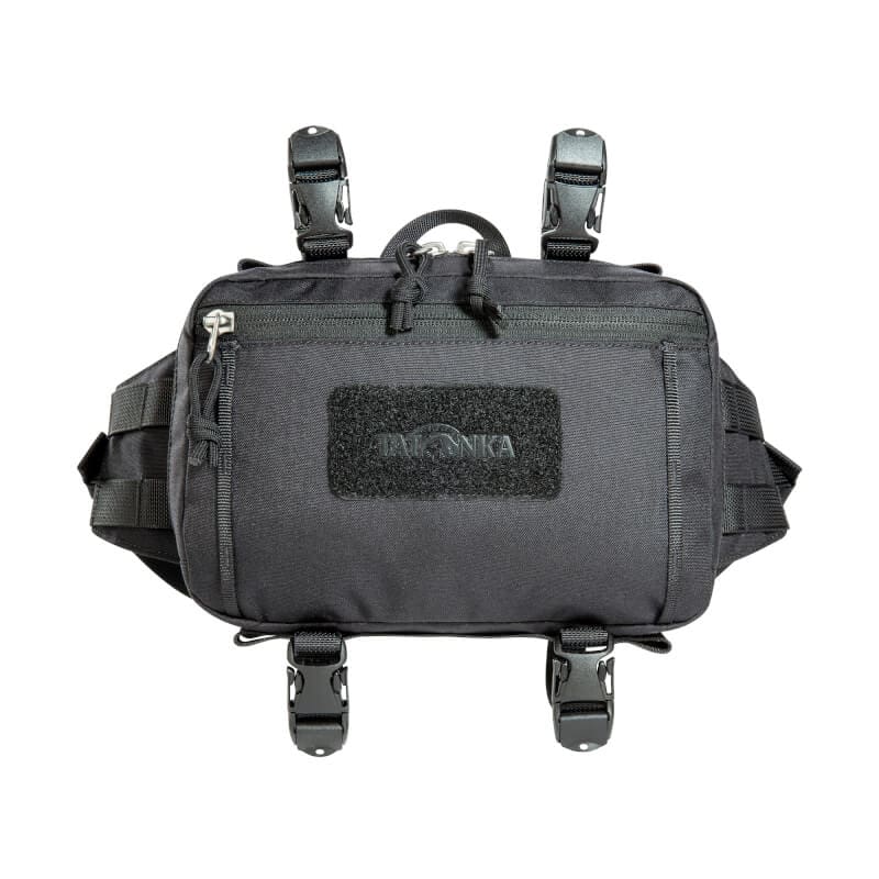 Auch das Äußere der Tasche ist auf Funktionalität ausgelegt: Die Hüftflossen sind mit modularen Befestigungsschlaufen ausgestattet, an denen du weiteres Equipment, wie zum Beispiel eine kleine Trinkflasche oder ein Karabiner, befestigen kannst. Auf der Vorderseite befindet sich zudem eine Flauschklett-Fläche (10 x 5 cm), perfekt geeignet für das Anbringen von Patches – so verleihst du deiner Tasche einen ganz persönlichen Touch.