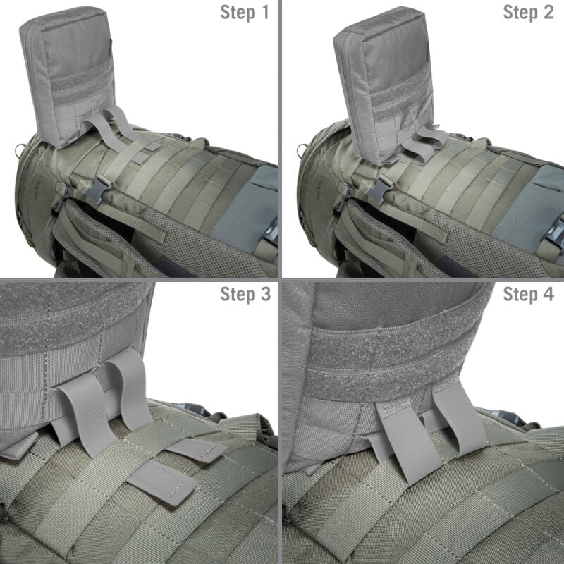 - Molle-System auf den Seiten und auf einer Hüftflosse