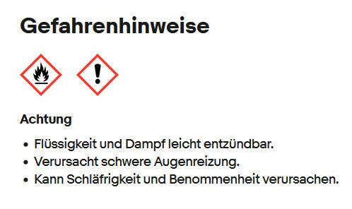 Warnhinweise und Sicherheitshinweise für Tiroler Steinöl-Produkte