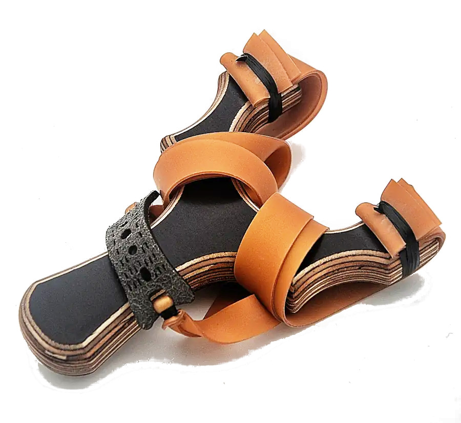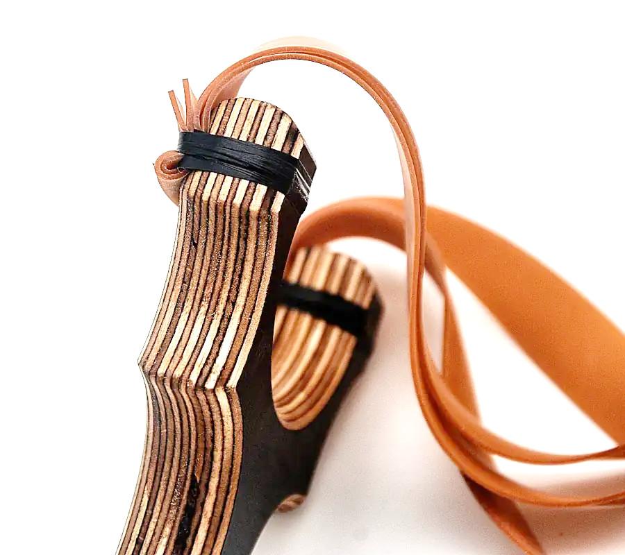 Das Gummis des Bandsets bestehen aus Premium Latex in 1mm Stärke. An jeder Seite der Pouch sind jeweils 2 Flachgummis befestigt. Das Spezial-Latex wurde extra für Zwillen gefertigt. Die mit Schlablone geschnittenen Bänder sind 25cm lang und laufen von 20 auf 10mm. Die Stärke des Latex fordert auch geübte Zwillunken. Es steht Dir frei die Bandsets zu kürzen, um noch höhere Geschwindigkeiten zu erreichen (geht dann evtl. auf Kosten der Haltbarkeit… Versuch macht kluch…)