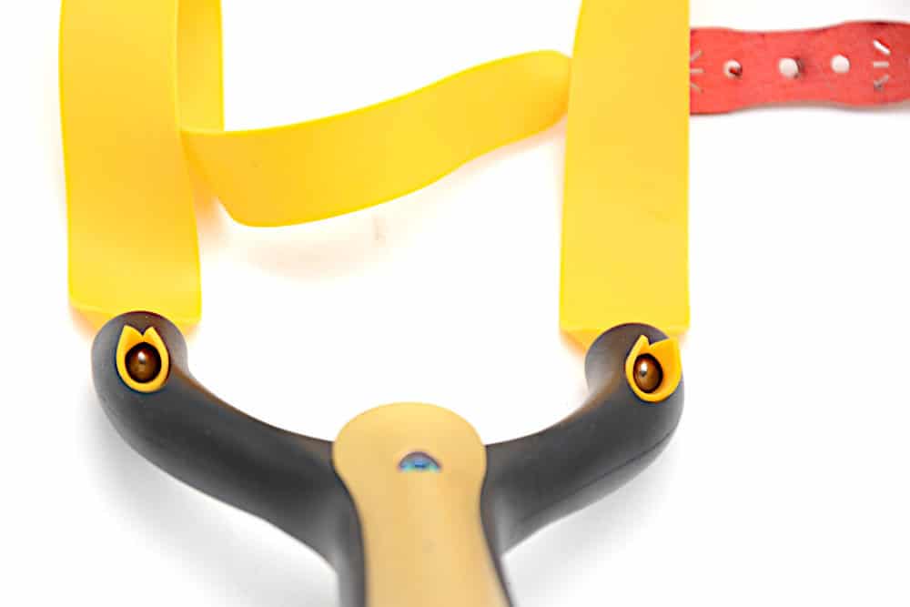 HINWEIS: Du kannst hier übrigens auch Tube-Schlauchgummis durch die Wurfgabel-Löcher führen und mit der Ball-In-Tube Technik dann fixieren!